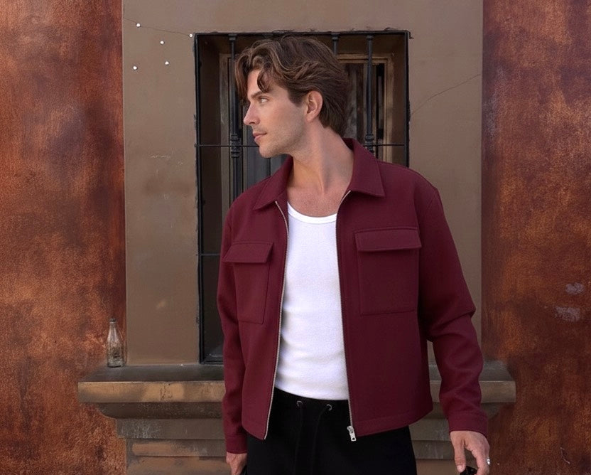Sold outBurgundy wool boxy jacket